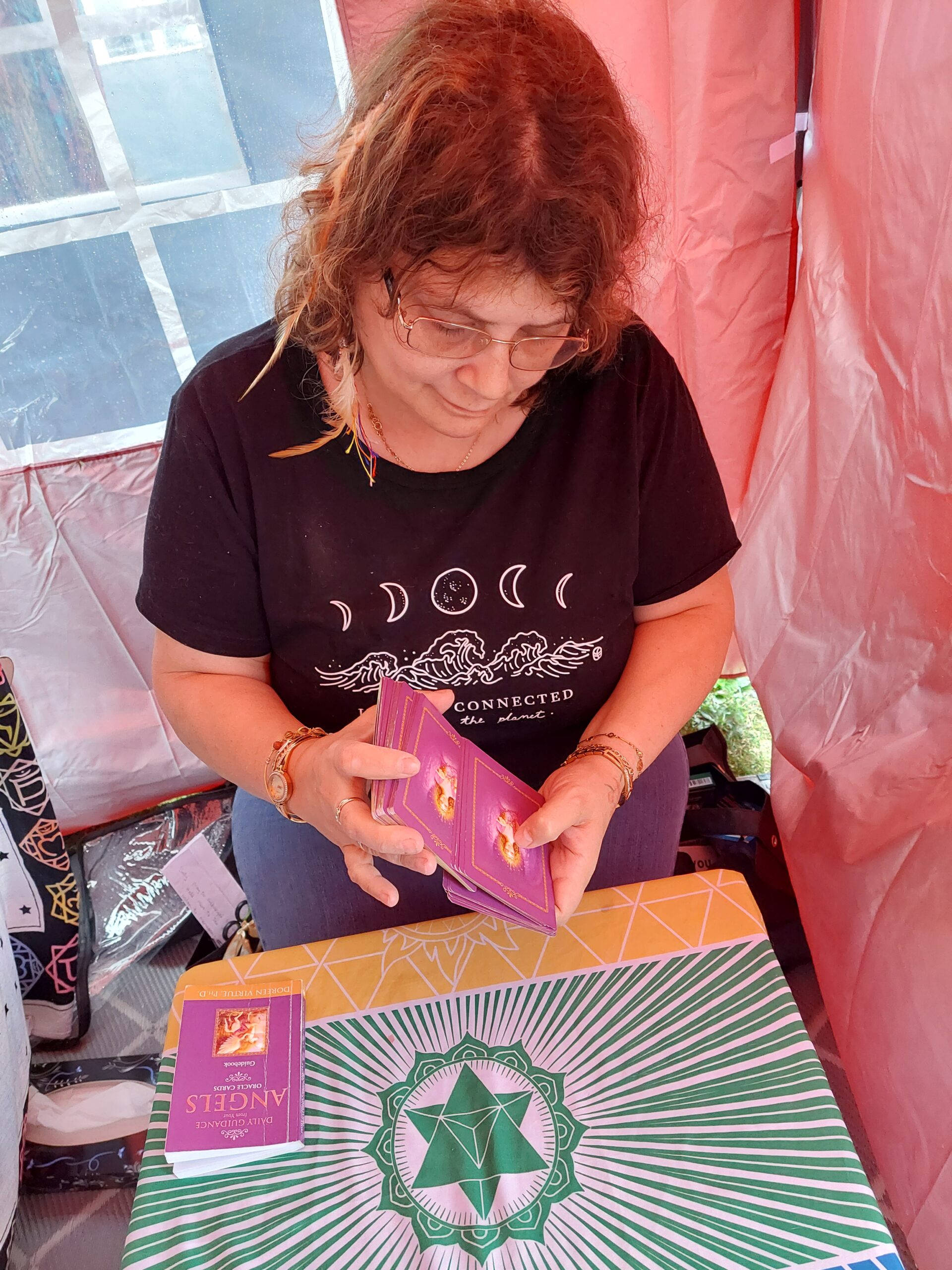 I began offering readings at local Mind, Body and Spirit events — small stalls, simple beginnings. And the response was overwhelming. People came with open hearts. With grief. With hope. With questions only the soul could answer. And then came an invitation that felt like destiny — to read at the Witches of Gaia Festival in Meriden, the very heart of England. Among pagans, seekers, healers, and mystics, I found my people. Twice a year I stood in that sacred space, meeting the most extraordinary souls, witnessing tears turn to peace, doubt turn to comfort. Each festival grew larger. Each connection deeper. Until once again, my body asked me to slow down.